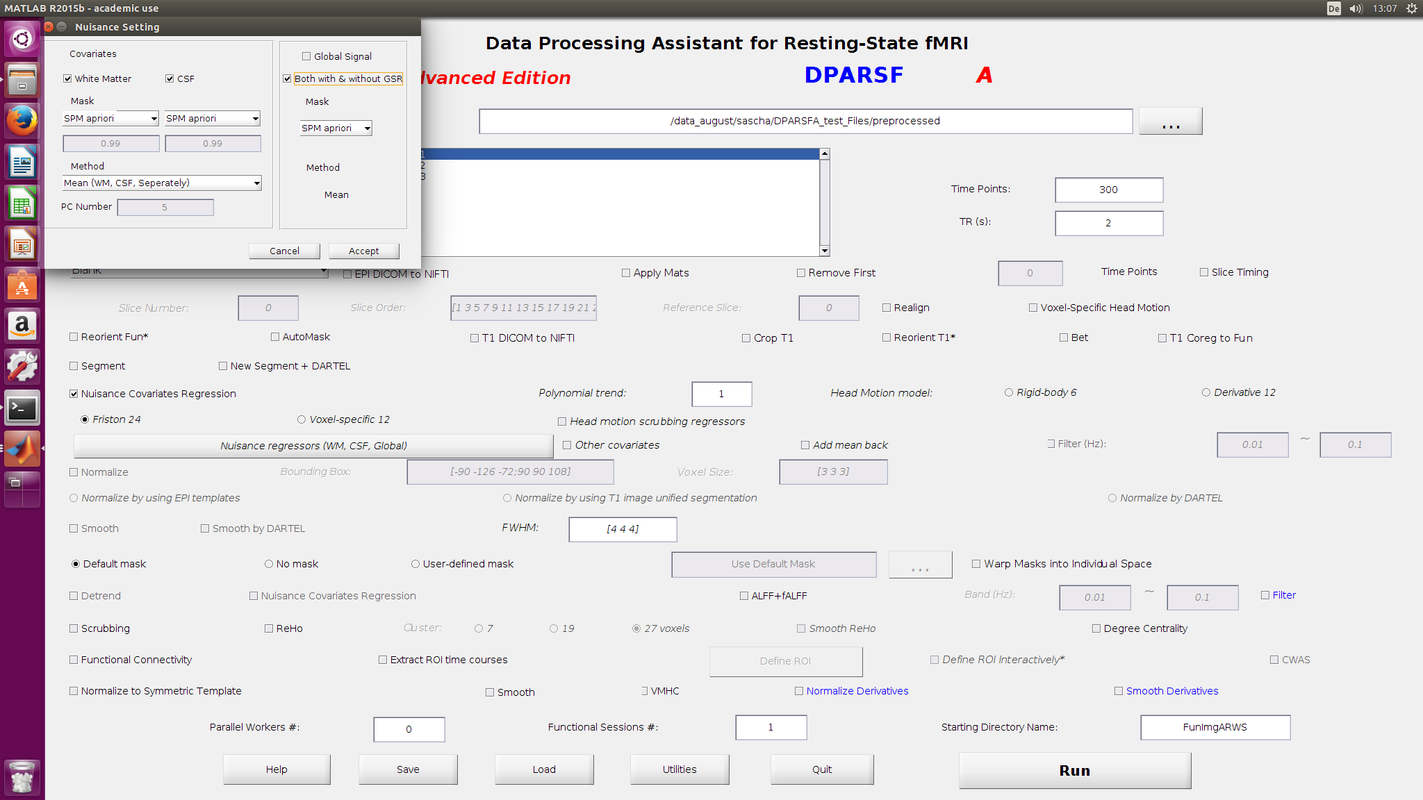 during the extraction of the ROI signals, I get the error message you can see in the picture. Apparently, DPARSFA is trying to create an array of size 279586x279586, or 582.4GB which is, needless to say, way too large for our computers. Is this a bug?